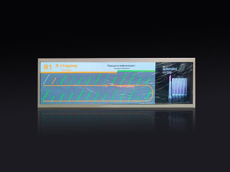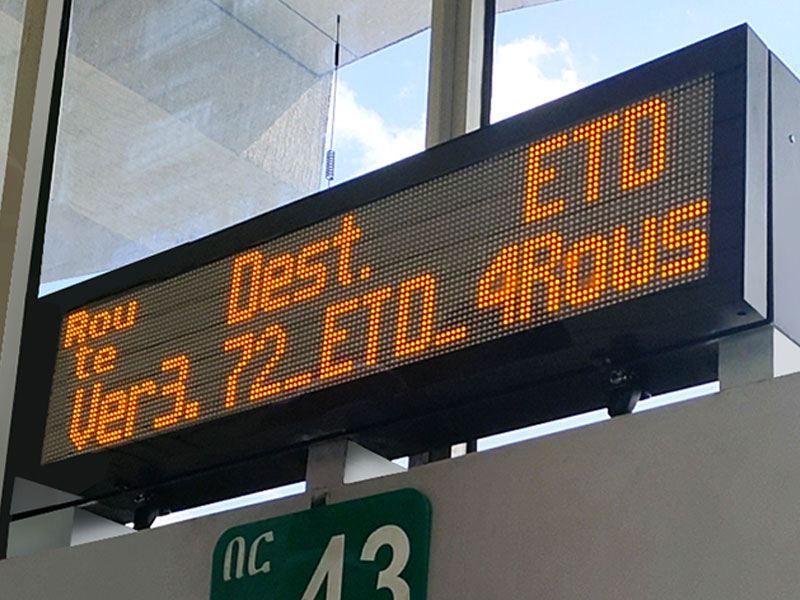Proporciona a los pasajeros la hora de llegada del vehículo, detalles de la estación, horarios de servicio, anuncios gubernamentales, anuncios, etc. Se puede utilizar para autobuses, metros, trenes, etc.